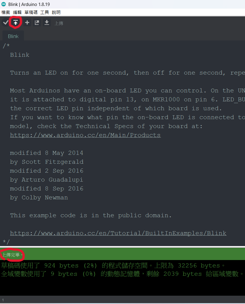 到這裡,你已完成最基礎的 Arduino 燒錄。